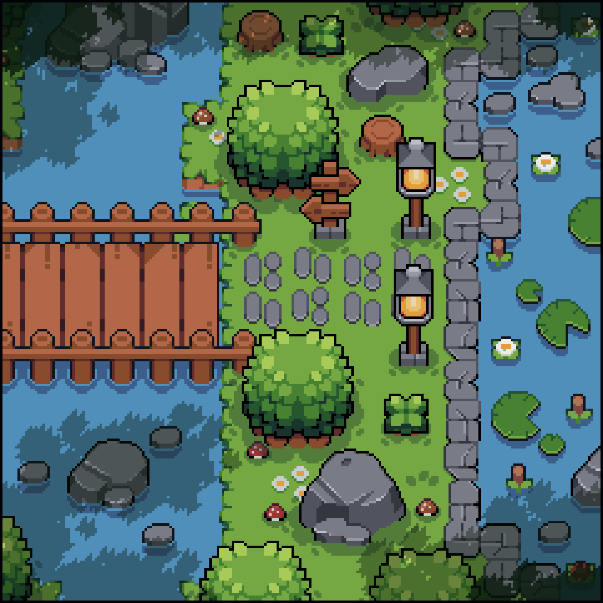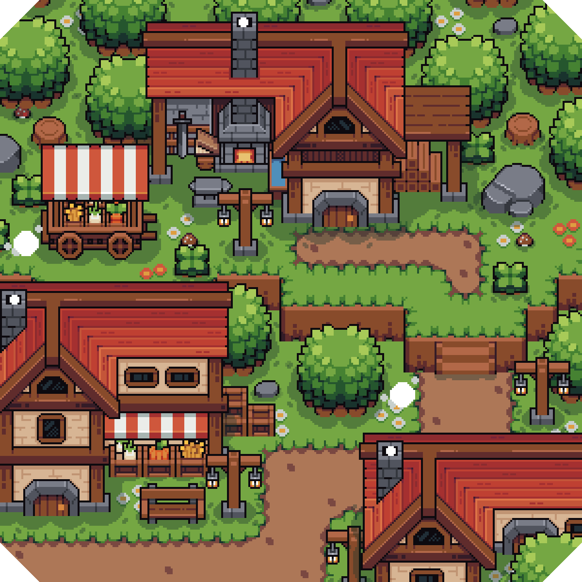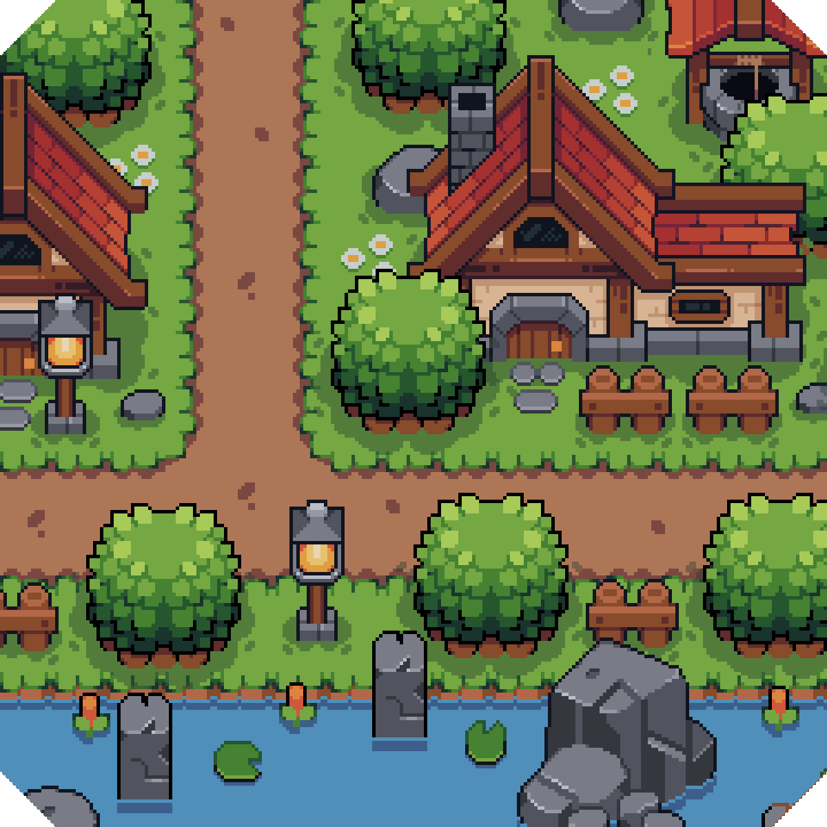 Imagine a place where the soft rustle of leaves and the gentle flow of a stream set the scene for a cozy, pixel-perfect village. With the Pixelwood Valley asset pack, you can bring this tranquil world to life in your game.